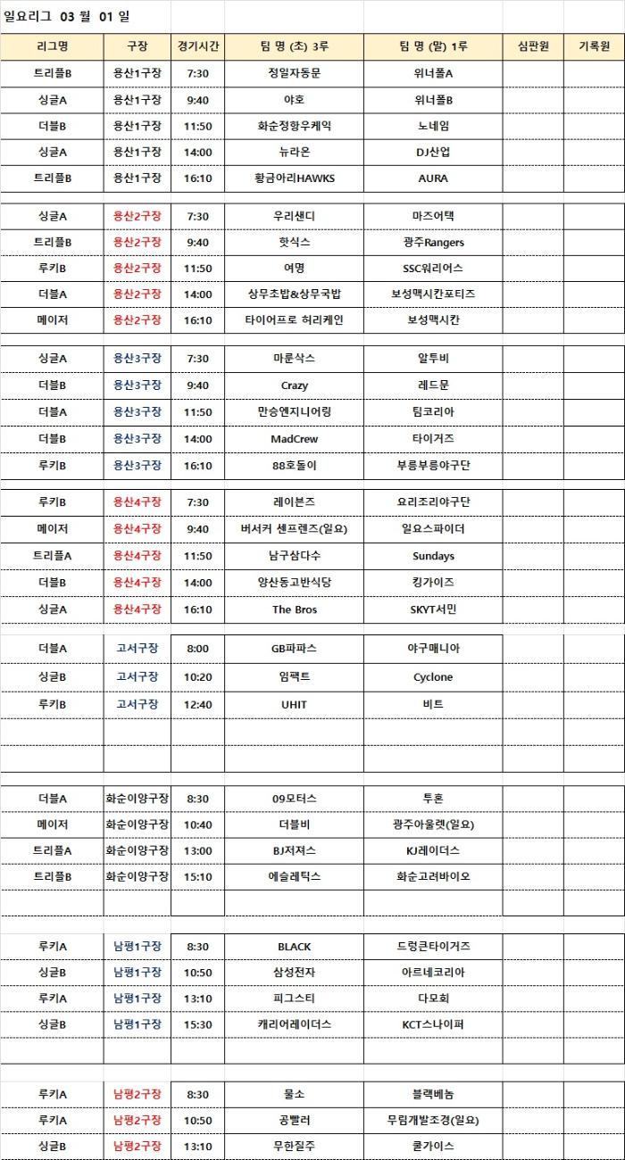 3월1일(일) 경기일정(수정)