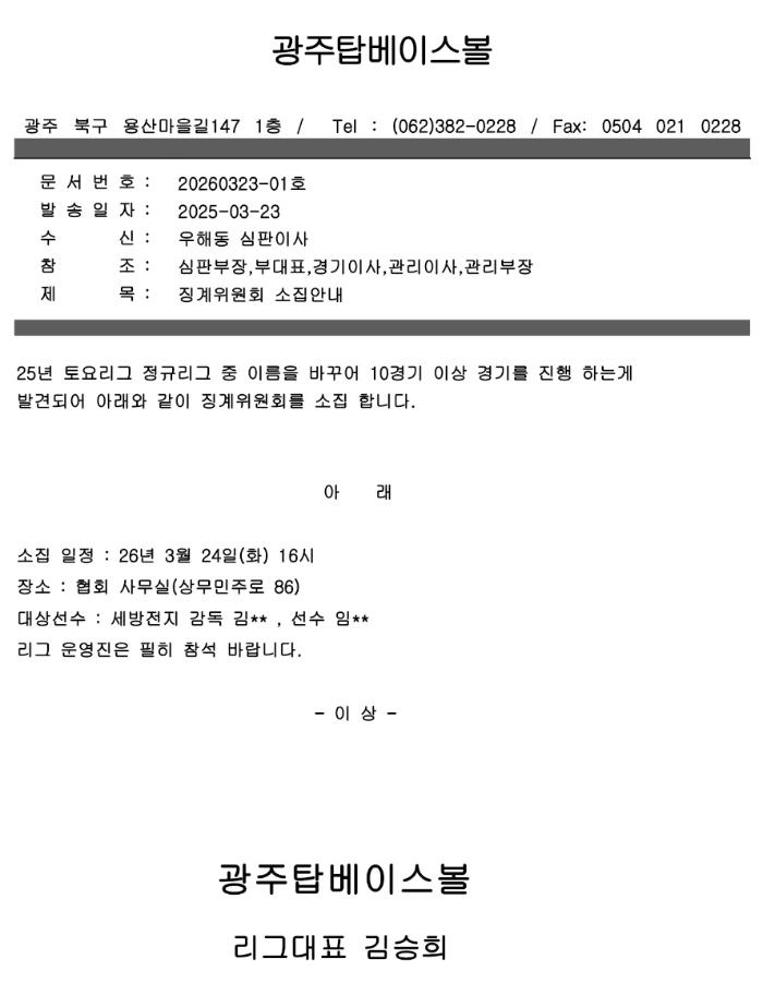 징계위원회 소집안내